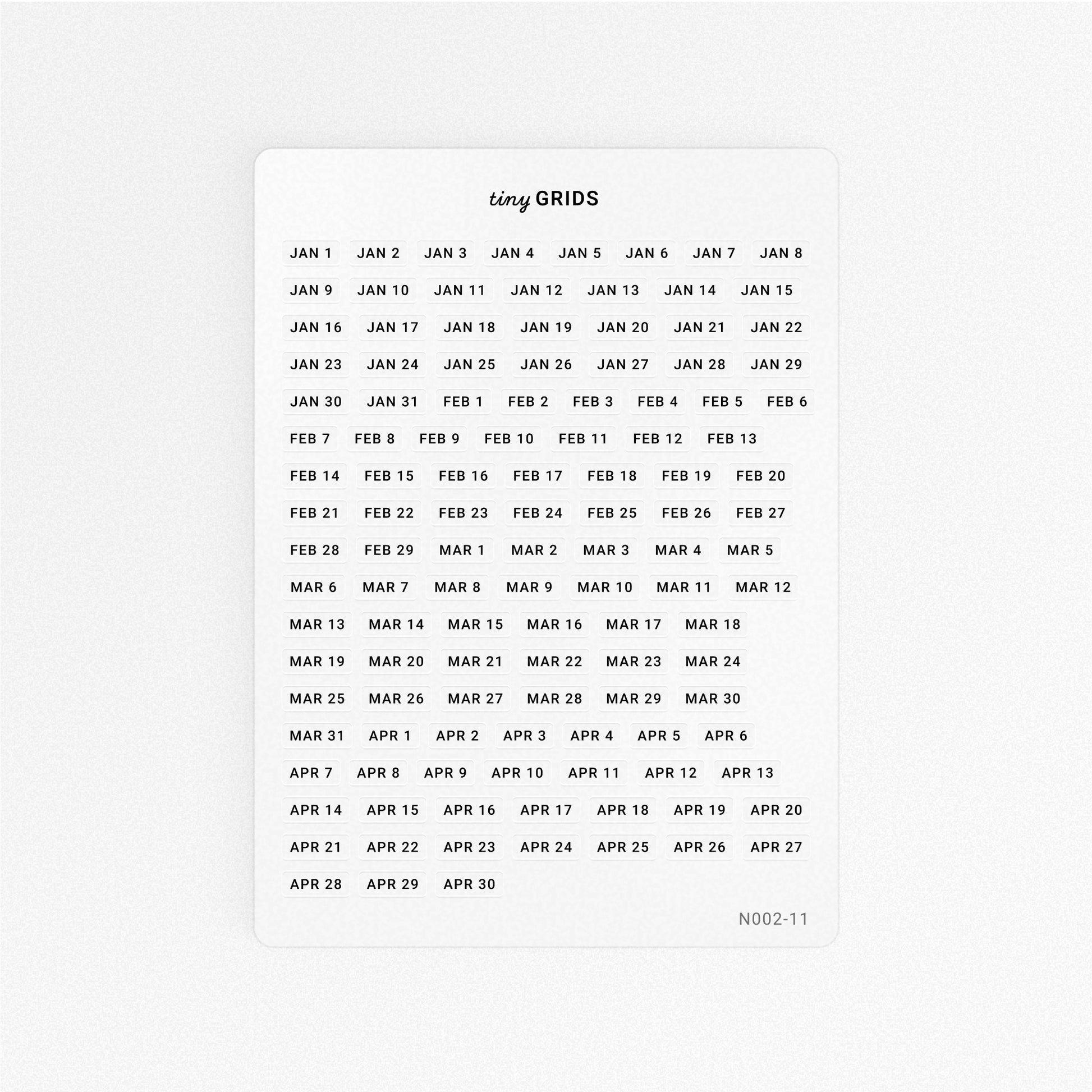 Date your journals with these tiny dates. Use all 366, if you dare.